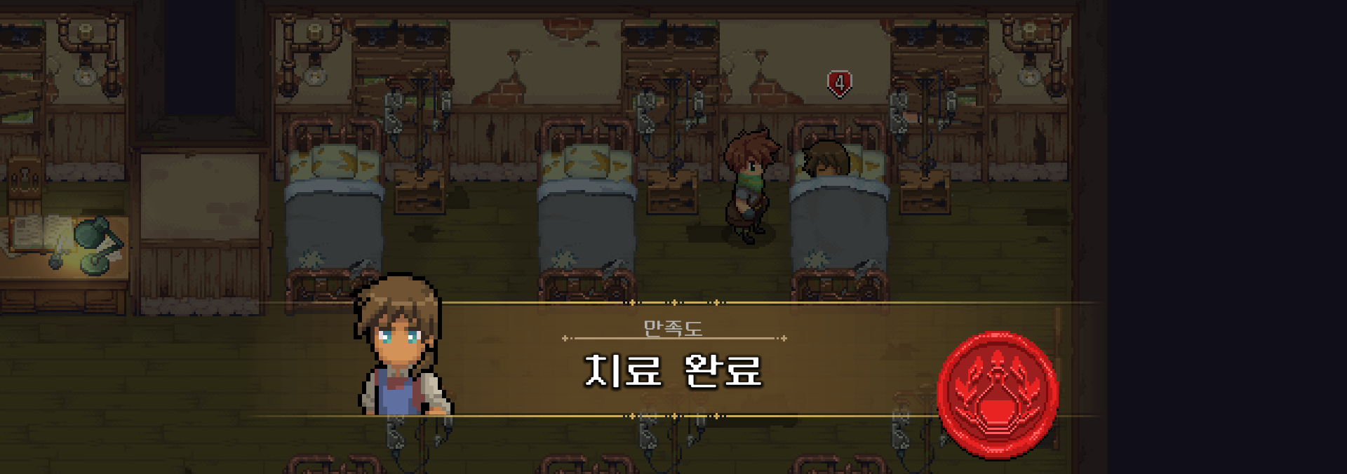 일어나자마자 바로 사이렌이 울려서 확인을 해봤더니 케이블카 수리를 위해 설계도를 따로 만들어주었던 루크가 입원을 해서 진단 후 치료를 해주었습니다.