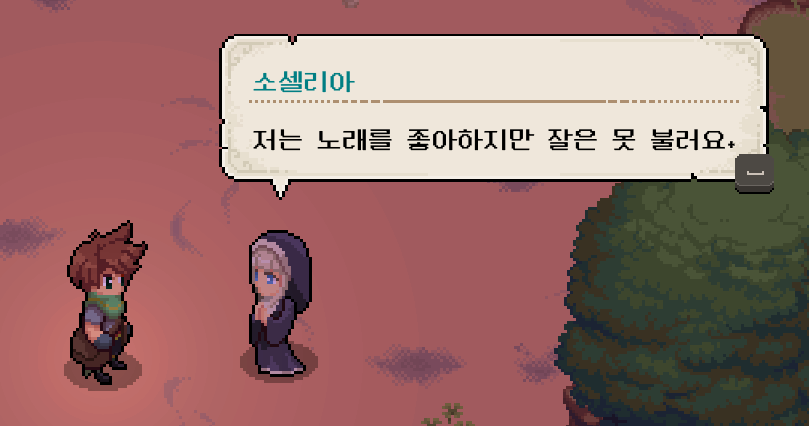 위로 올라가니 혼자 모래사장 위에서 노래를 부르고 있는 '소셀리아'를 만날 수 있었습니다. 이야기를 들어보니 노래를 좋아하지만 잘은 못 불러서 혼자 연습을 하고 있었습니다.