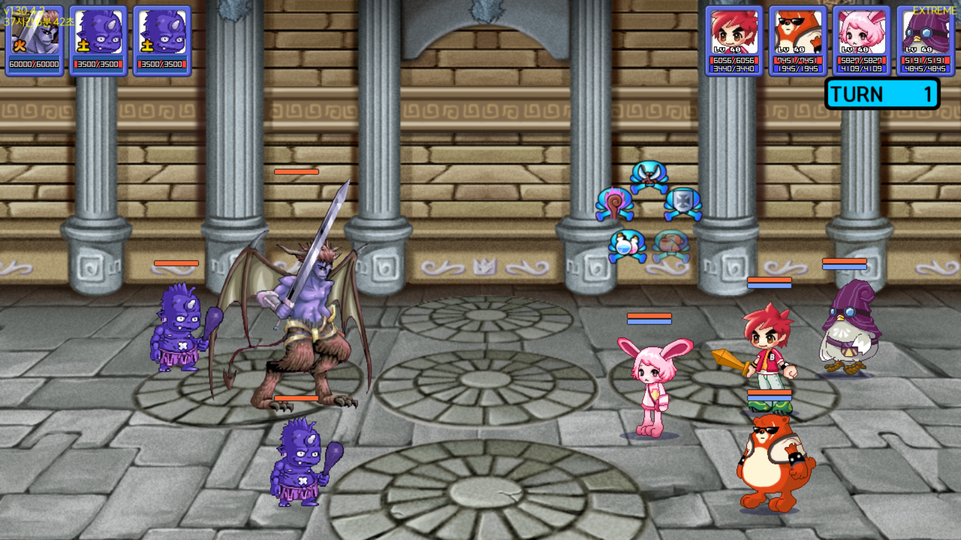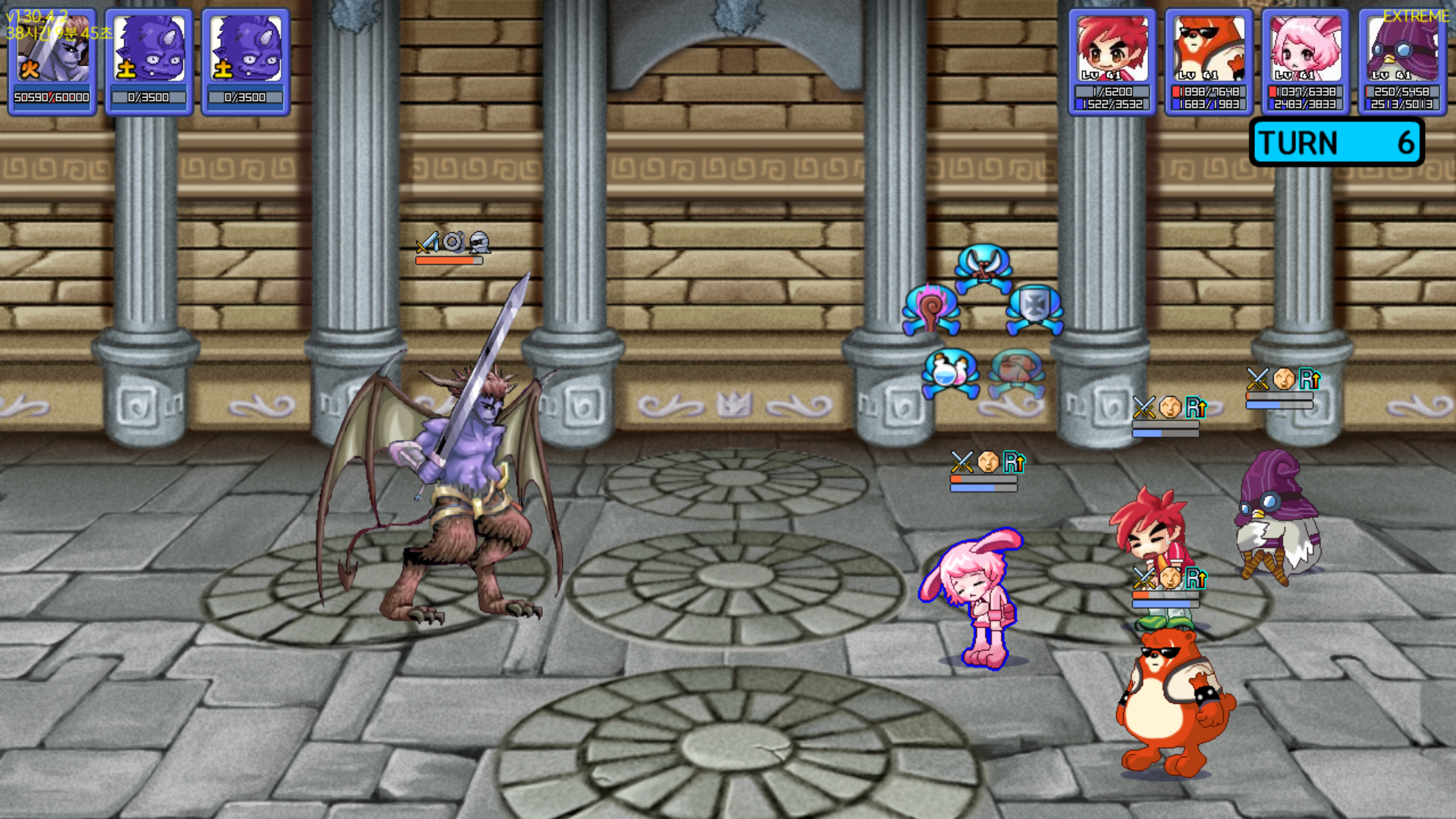하지만 아직 스펙이 부족한 탓인지 전체 공격을 맞고 단체로 리타이어를 해버렸습니다.