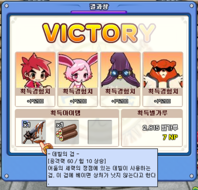아크 데빌을 잡고 보스 아이템으로 '데빌의 검'을 얻을 수 있었습니다. 높은 공격력에 힘 옵션까지 달려있어서 당분간은 로빈슨이 계속 착용을 하면 될 것 같습니다.