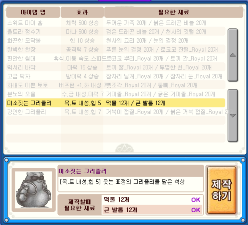 오는 길에 얻은 재료로 가구를 만들고, 그리즐리의 '더블 어택'도 배웠습니다. 더블 어택도 문슬래시 Final과 똑같이 2회 공격으로 잘 사용하면 2인기로도 사용할 수 있습니다.