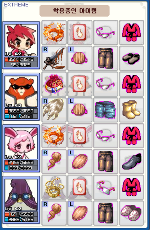 결국은 다시 스펙업을 하기로 했습니다. 레벨을 올리기도 하고, 상자를 열어 더 좋은 장비를 얻으면 교체를 하기도 했습니다.