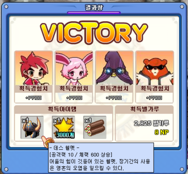 그렇게 아크 데스킹을 잡는 데에 성공했습니다. 보스 아이템으로 '데스 헬멧'을 얻었는데 옵션이 약간 애매해서 사용할지는 모르겠습니다.