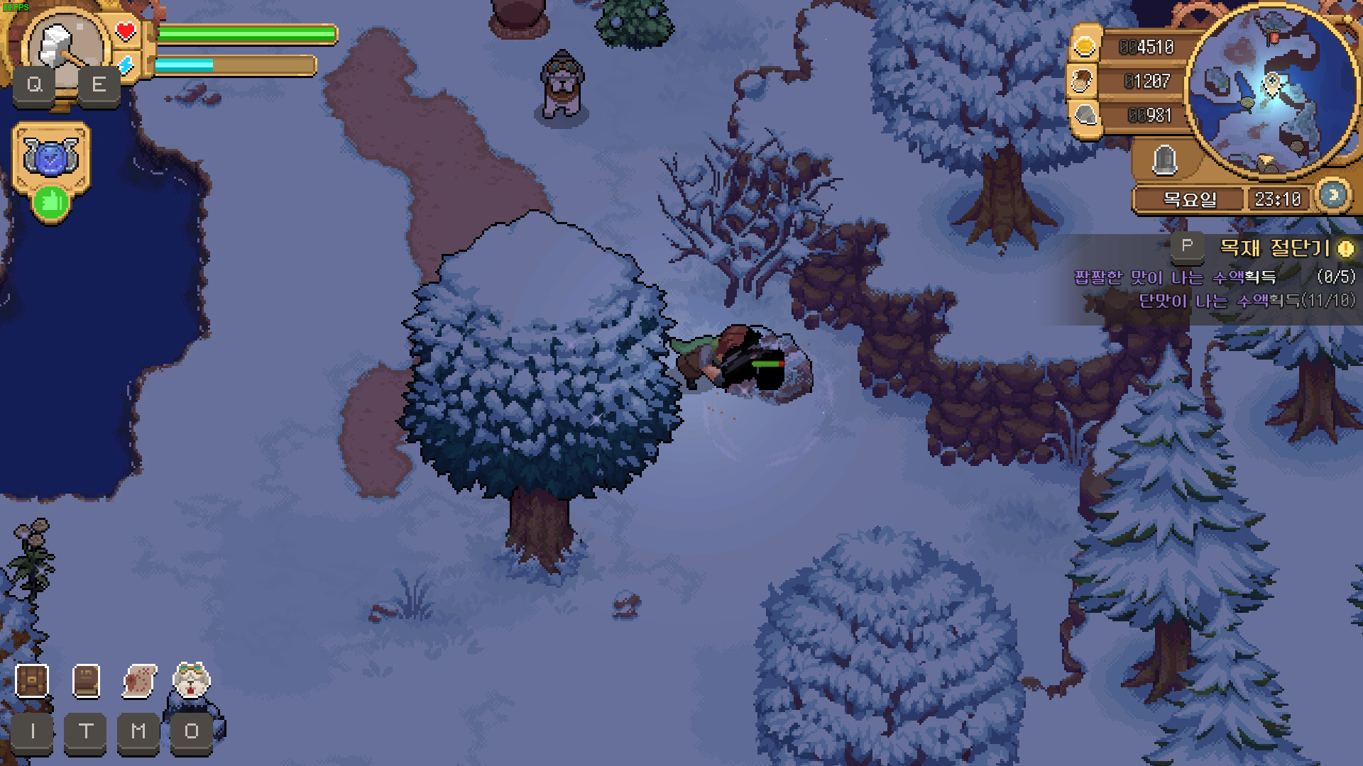 그리고 바로 텔레포트를 타서 목재, 석재, 약재를 꾸준히 모아줍니다. 강아지 호감도도 최대로 채웠기 때문에 주기적으로 땅을 파면서 재료를 수급할 수 있습니다.