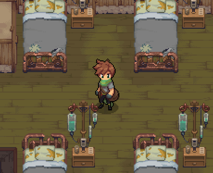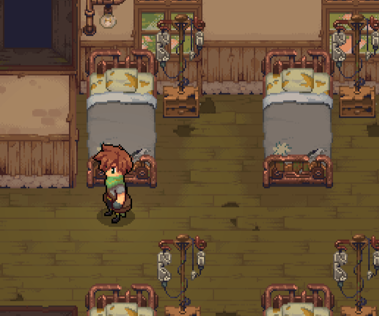 치료소가 업그레이드 된 후 전과 비교를 해봤습니다. 일단 협탁이 깨끗하게 수리가 되었고, 중간 음푹 패인 바닥도 수리가 되었는지 바닥이 깔끔했습니다.