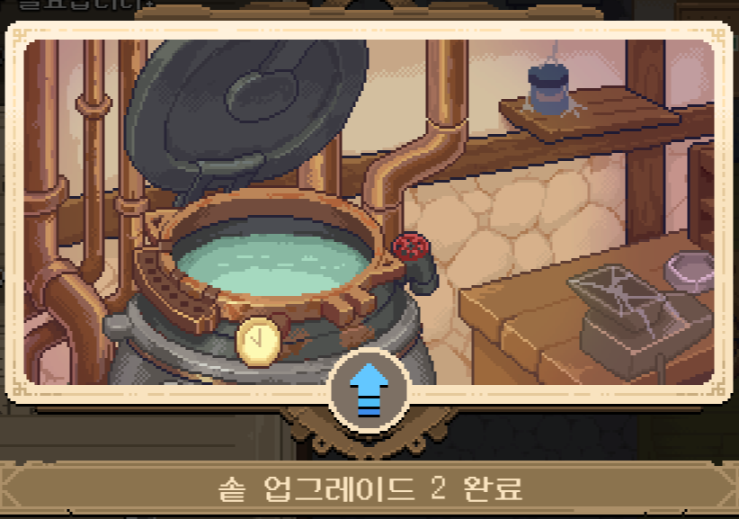 또또 재료를 모아서 솥도 업그레이드를 해주었습니다. 나중에는 물약 하나에 사용되는 약재로 많아지기 때문에 미리미리 업그레이드를 해주었습니다.