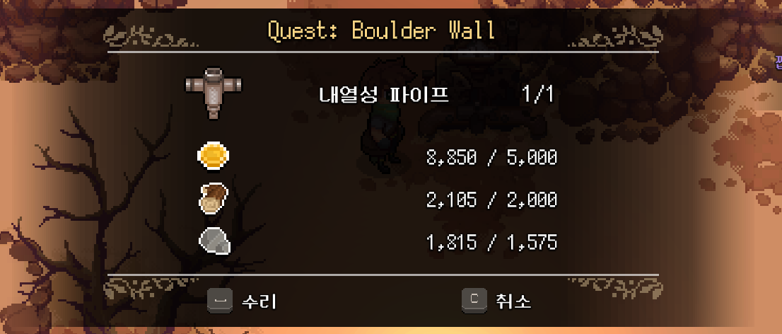 도구는 어느정도 업그레이드가 되어있는데, 집이나 치료소 쪽 업그레이드가 많이 되어있지 않아서 사막을 가기 전에 이쪽을 먼저 해결해보려고 합니다.