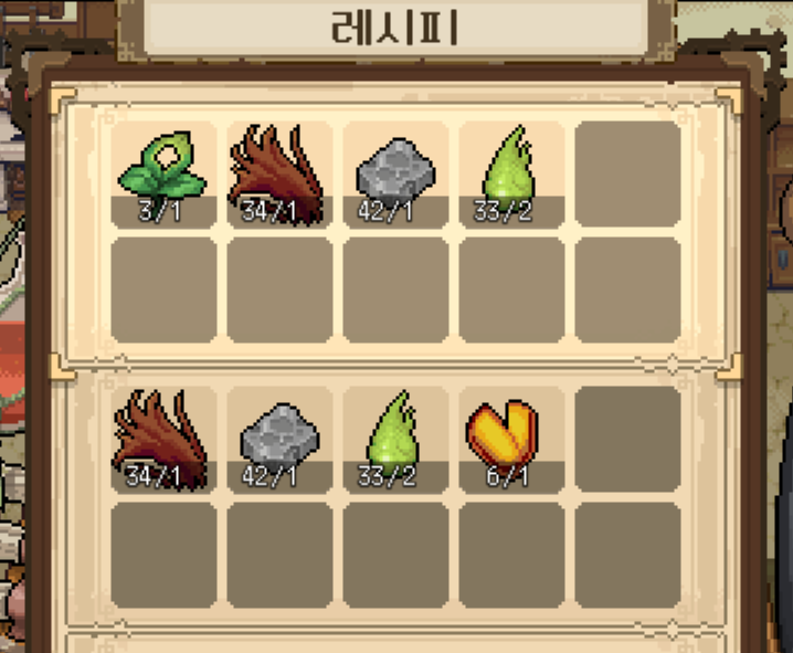 그래서 개인 최적의 레시피를 가지고 있으면 꽤나 편하게 물약을 만들 수 있을 것 같더라고요.