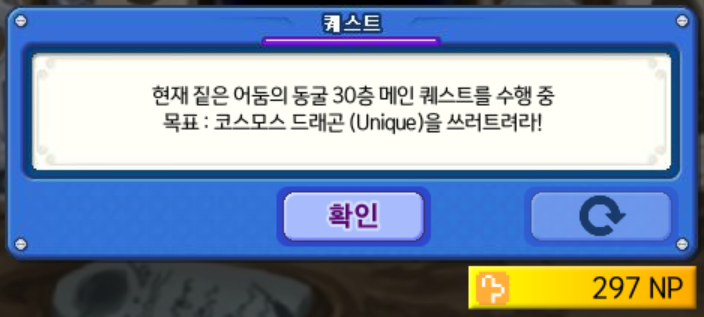 그렇게 '짙은 어둠의 동굴' 던전을 모두 클리어 했습니다. 이제 마지막 던전만이 남았습니다.