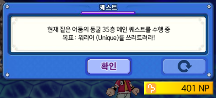 짙은 어둠의 동굴 35층의 마지막 보스는 '워리어'입니다. 또 다시 만나게 되네요.