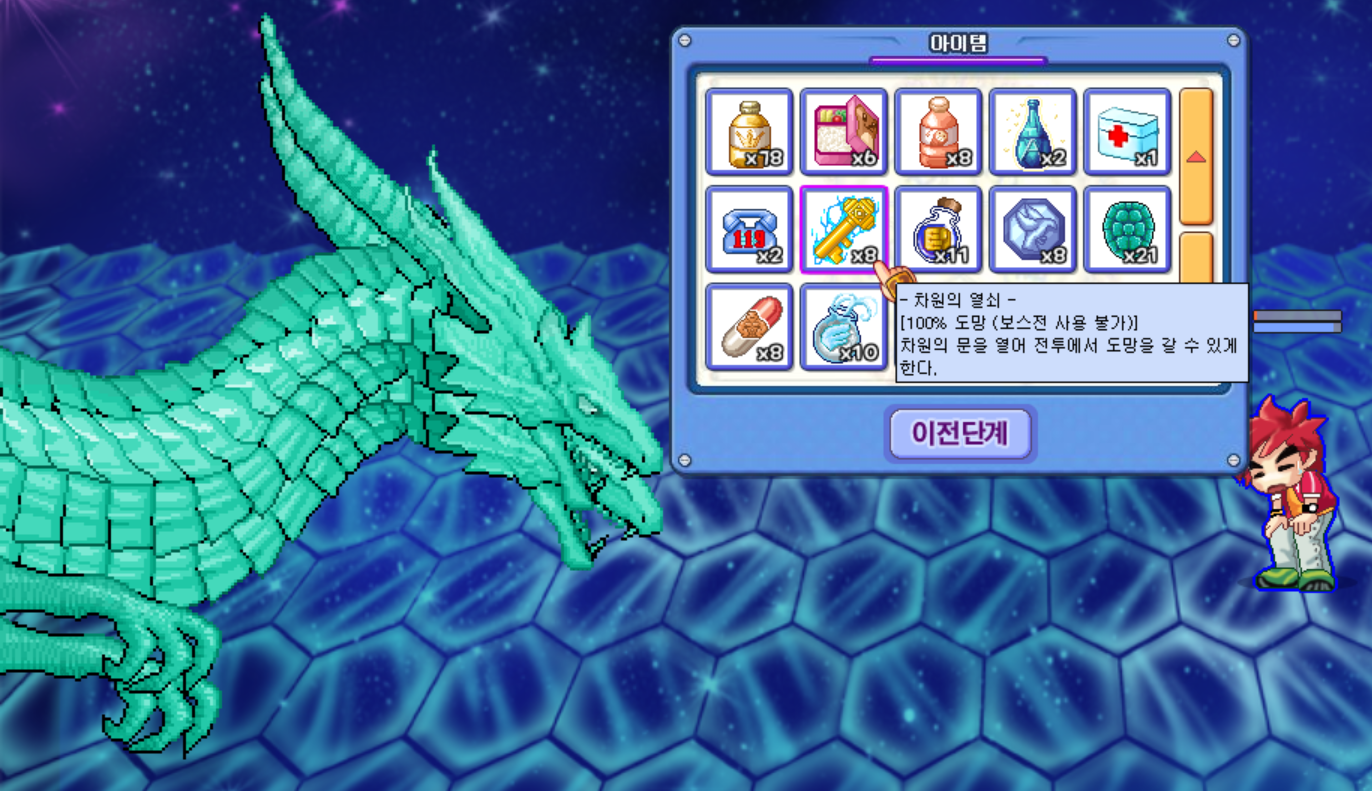 아찔하게 보스가 두 세마리씩 나와서 차원의 열쇠까지 사용을 해가면서 도망을 쳤습니다.