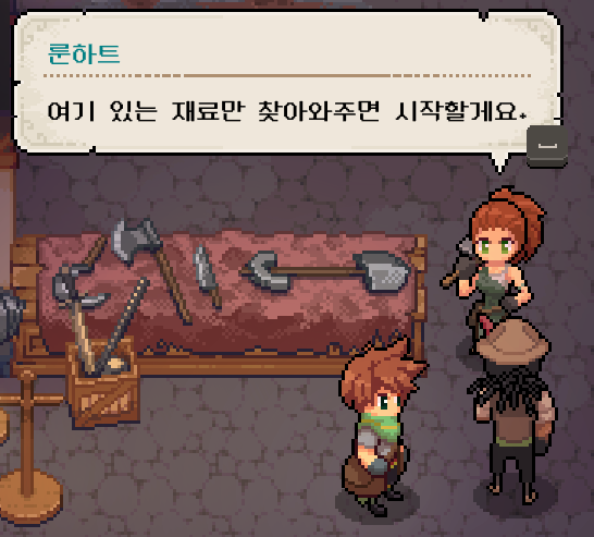 그래서 곡괭이를 만드는데에는 시간이 좀 걸릴 것 같아서 건물 업그레이드를 위해서 다른 퀘스트를 해결해보기로 했습니다.