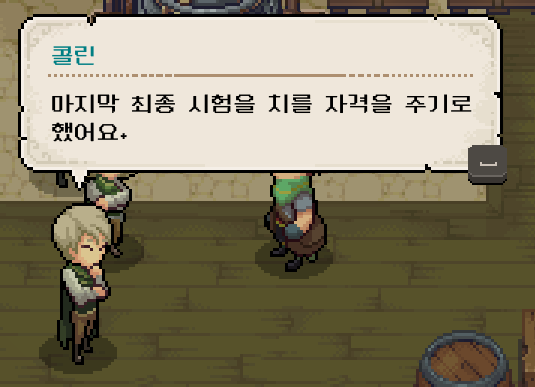 '천사의 와인'을 제작하는 것이 시험이었는데, 오염된 물을 정화한다고 솥을 업그레이드를 했기 때문에 큰 어려움 없이 제작할 수 있었습니다.