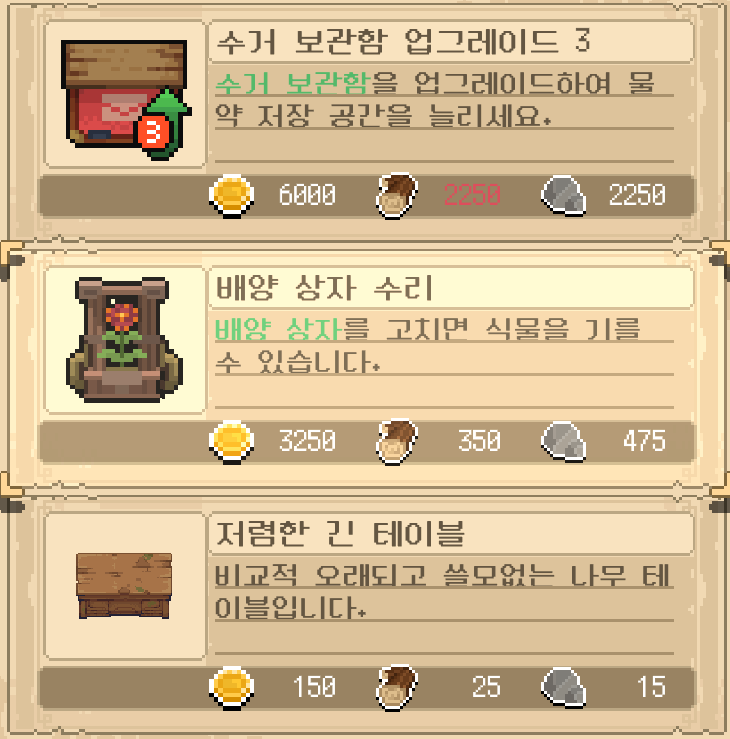 [포션퍼밋] #15 - 도구 최종 업그레이드와 가구 제작하기 (3) | 2023.05.08 |