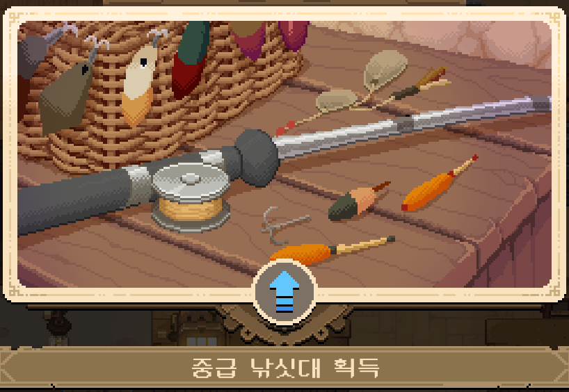다행히 이미 재료들을 쌓아놔서 바로 '중급 낚싯대'로 업그레이드 할 수 있었습니다.