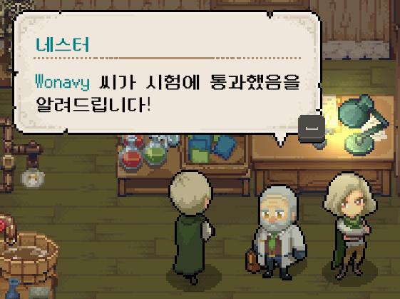 같이 치료소로 향하니 네스터 박사가 기다리고 있었습니다. 저번에 했었던 마지막 시험에 통과를 했다는 소식이었습니다.