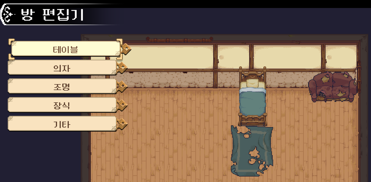 집에 배양 상자 옆에 있는 장식을 통해서 가구 배치를 할 수 있습니다.