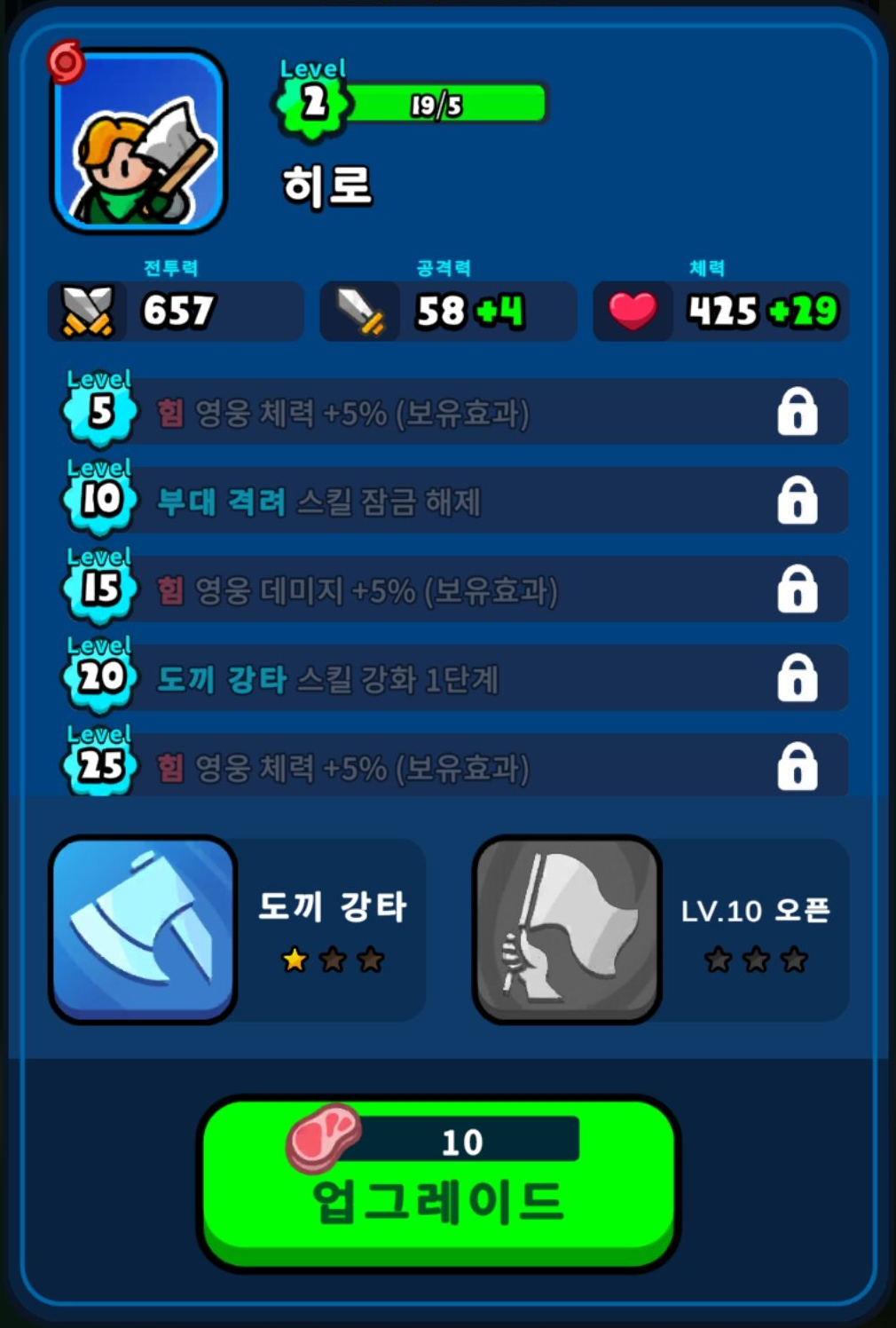 영웅을 보면 5, 15, 25레벨에 패시브로 올려주는데 잘 안쓰는 영웅이라고 해도 기본적으로 레벨을 올리면 되더라고요.
