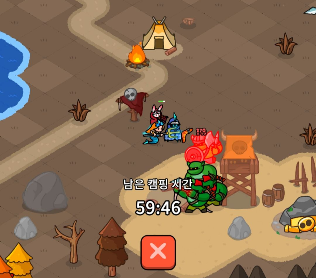 다행히 영웅이 전투 쓰러져도 전멸 처리는 되지 않기 때문에 부활 시간이 되면 자동으로 일어나서 다시 싸우고 그렇습니다.