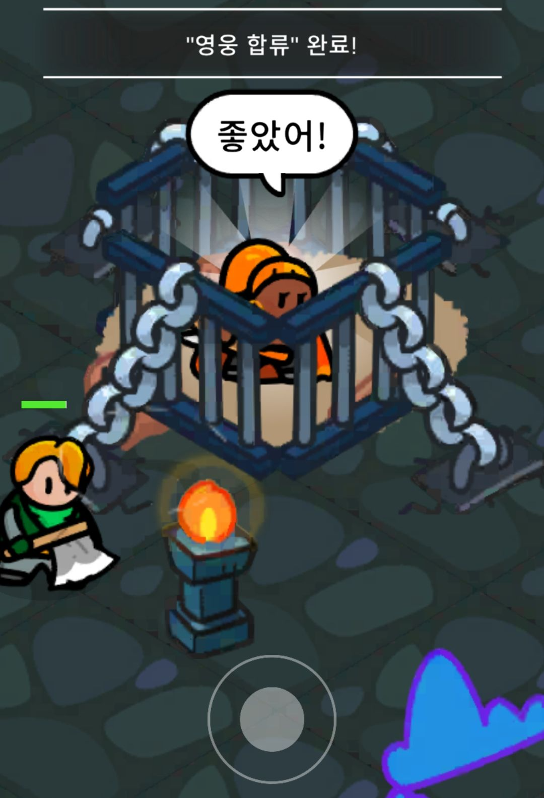 전투는 기본적으로 자동으로 진행됩니다. 스킬도 알아서 사용을 하고요. 순수하게 주요 공격만 이동으로 적당하게 피해주면 되더라고요.