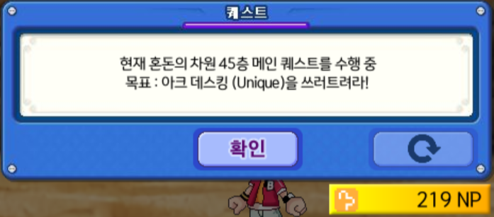 그렇게 '도망가기', '환상붕괴' 조합을 사용해서 어떻게든 내려가 혼돈의 차원 45층에 도달했습니다. 45층의 보스는 '아크 데스킹(Unique)'입니다.