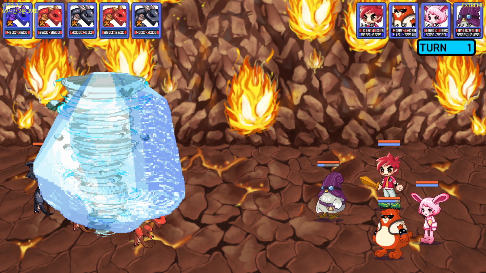 평타가 워낙 강력하다 보니 시작부터 2명 쓰러지고 시작을 해서 스펙을 좀 더 올려야 하나 고민을 했는데, 일단은 좀 더 진행을 해보기로 했습니다.