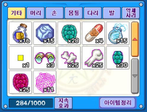 이렇게 아이템 각각 25개씩 모았는데요.