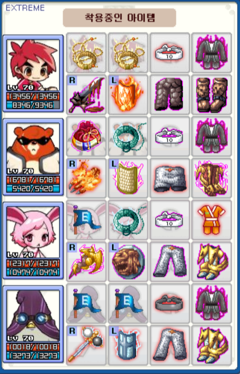 혼돈의 차원 50층 클리어 당시 아이템 세팅입니다.