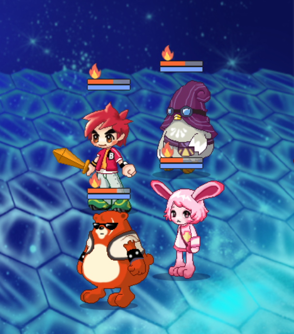 보통은 체력/마나를 회복하면서 보조를 해주거나 각각 '더블어택', '발차기'나 '메테오 스트라이크' 등으로 대미지를 같이 하는 방법도 있는데, 그냥 서포트해주는 게 더 안정적이었습니다.