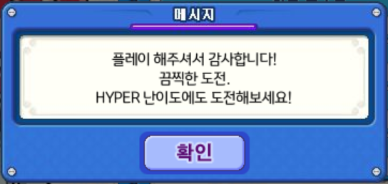 이제 최강 최악 난이도 '하이퍼'만 남았습니다.