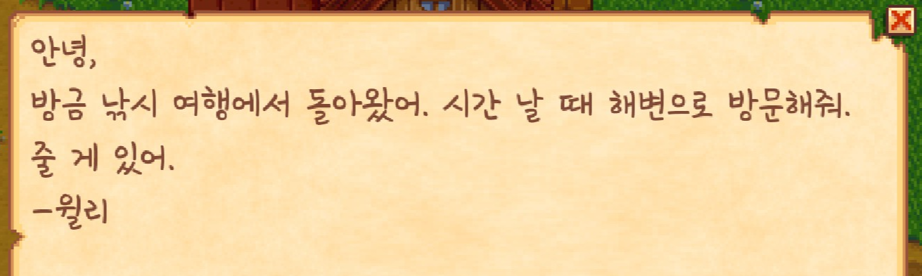 읽어보니까 윌리의 편지였는데요. 바닷가로 가면 됩니다.