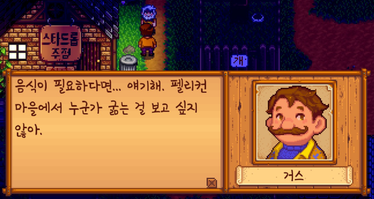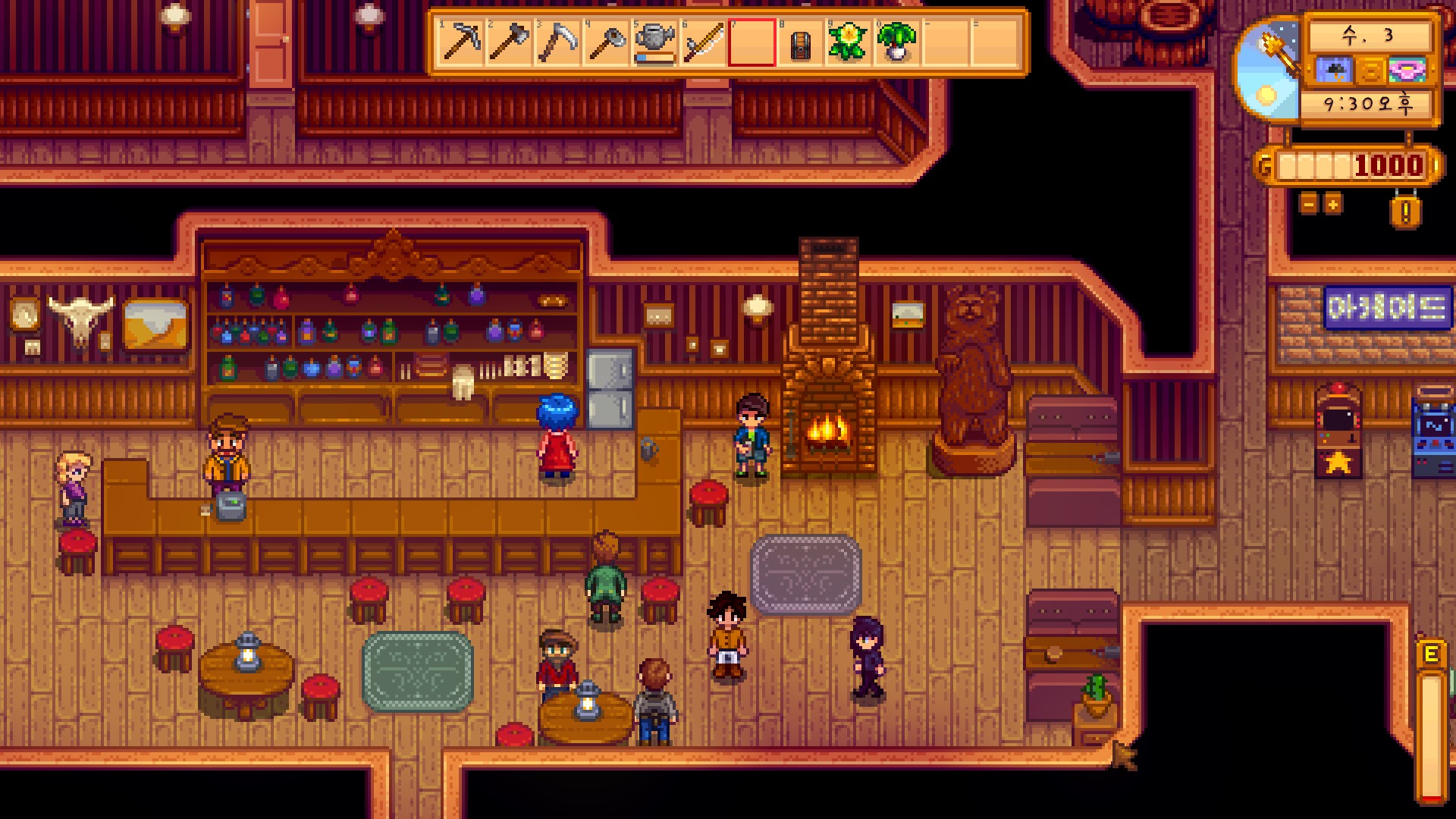 보통 저녁에 주점을 방문하면 NPC들이 모여있습니다. 저는 보통 이때를 이용해서 호감도 관리를 하는 편입니다,
