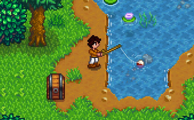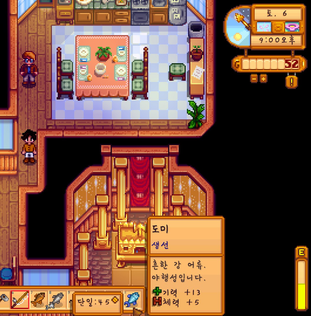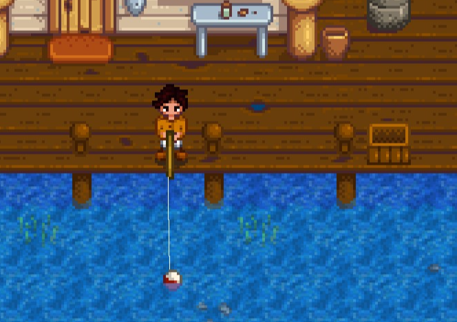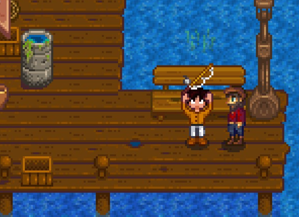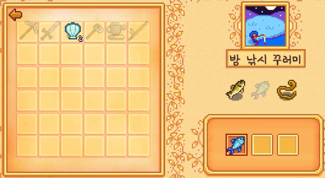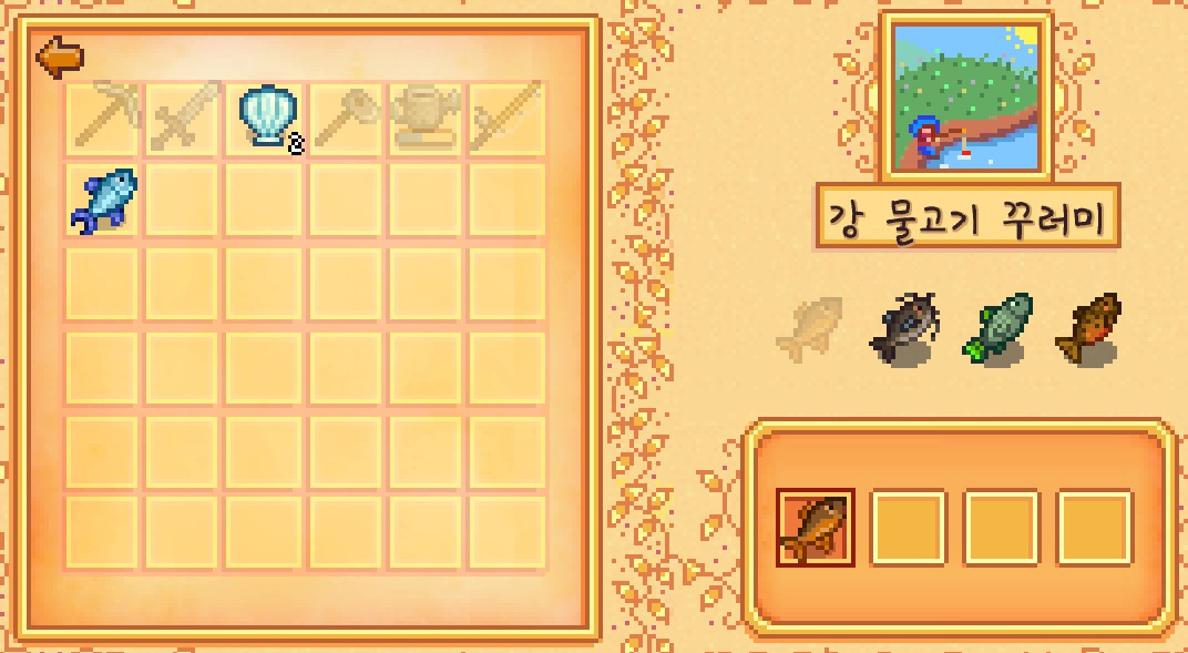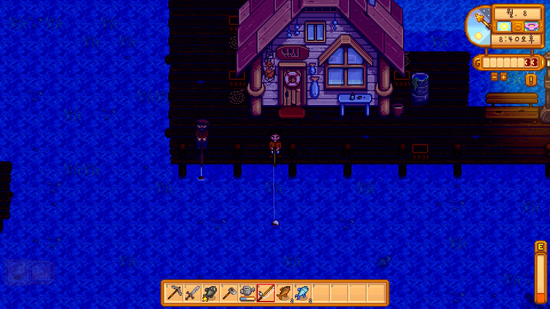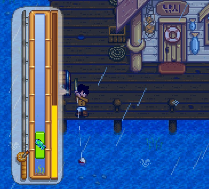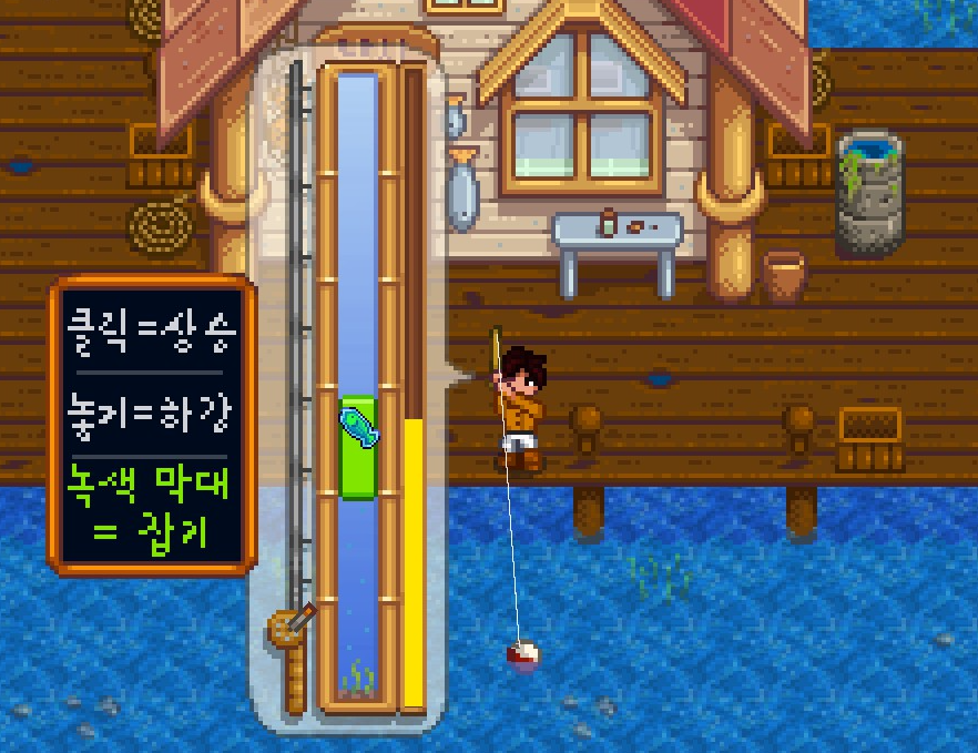 바로 낚시를 해줬습니다. 낚을 때 미니게임을 거치게 되는데 스타듀 밸리 낚시 시스템이 꽤나 재미있게 되었습니다. 개인적으로 광질을 포함해서 순수 재미를 담당한다고 생각해요.