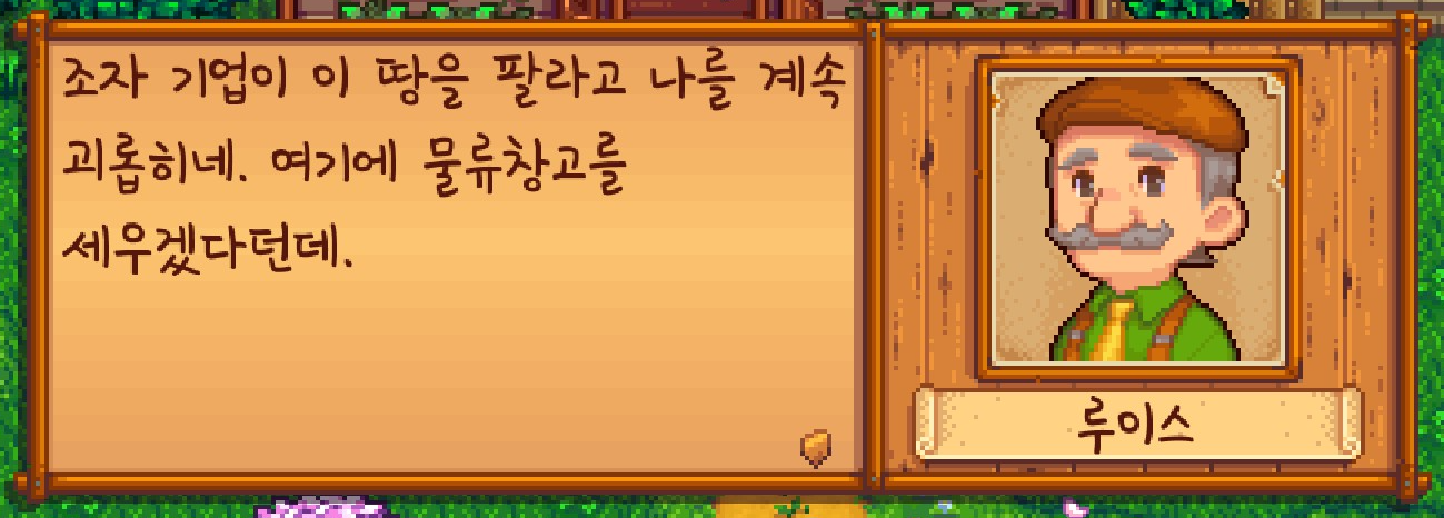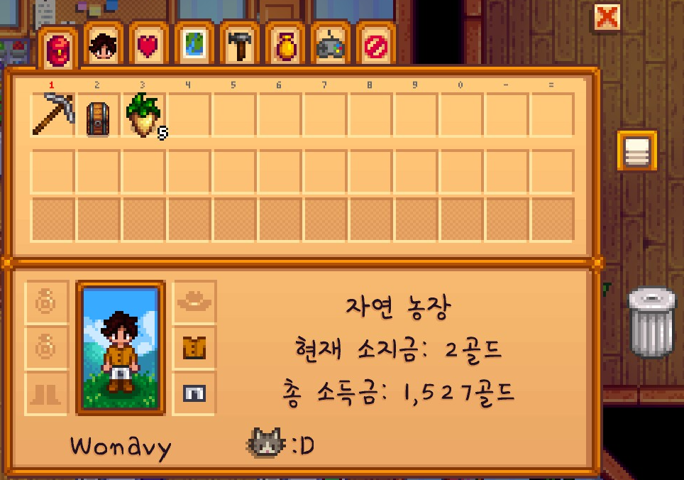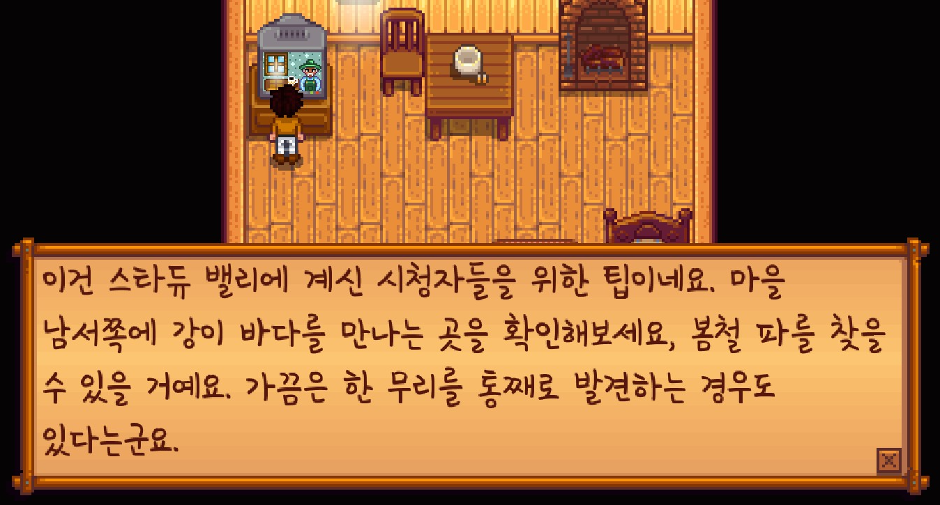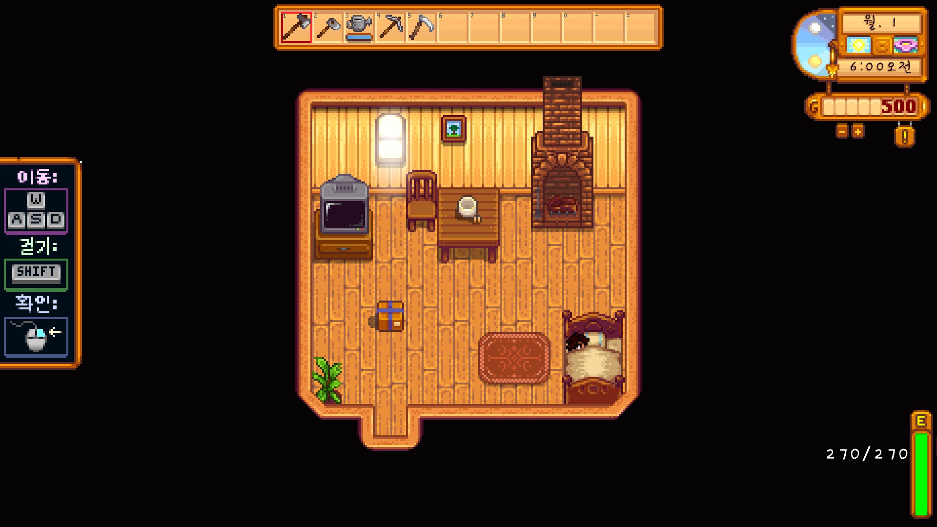 게임을 너무 간만에 하다보니 초반에 무엇을 해야할 지 몰라서 좀 헤매고 있는 것 같은데, 그래도 스타듀 밸리는 힐링겜이니까 여유롭게 즐겨보려고 합니다.