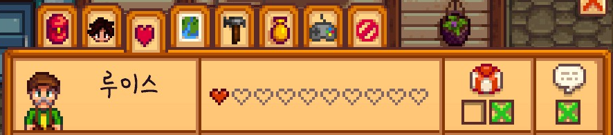 다행히 싫어하는 선물은 아니었고, 호감도 하트 하나를 볼 수 있었습니다.