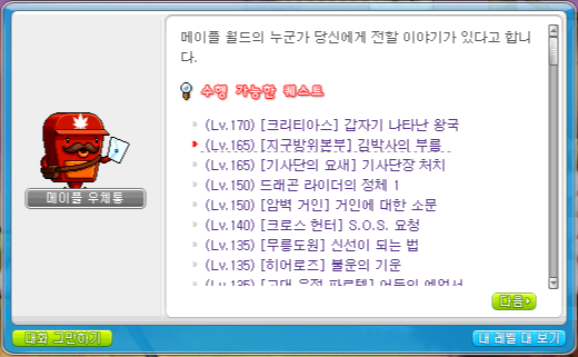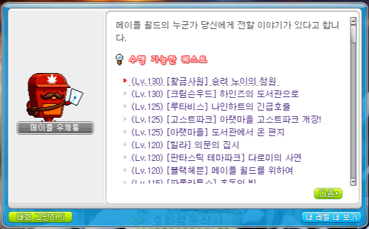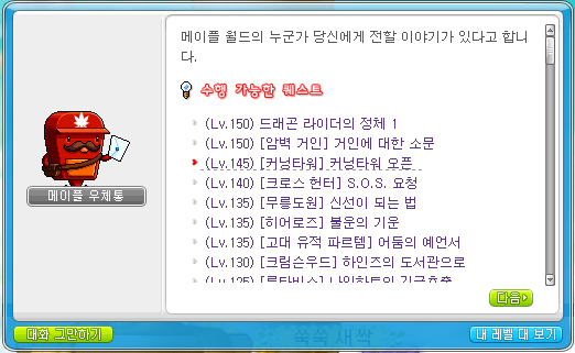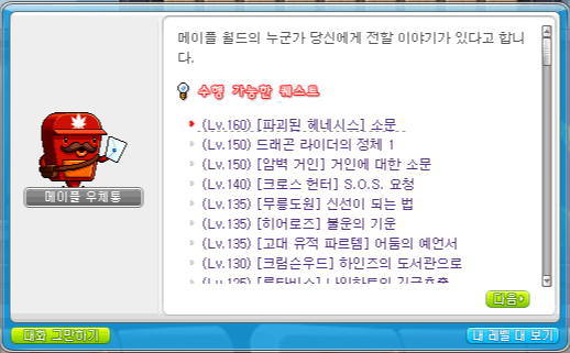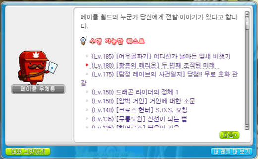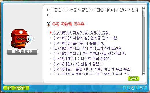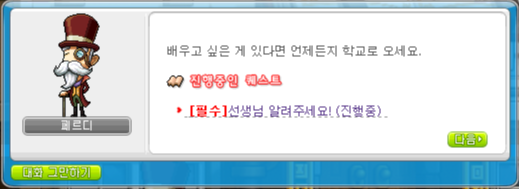 황혼의 페리온 퀘스트를 완료 한 이후에는 헤이븐에서 대화 조금만 해도 얻을 수 있는 경험치와 몬스터 파크 2회까지 했는데도 경험치가 좀 부족해서
