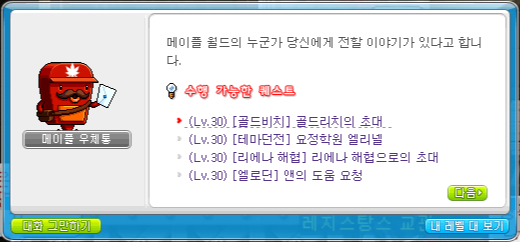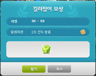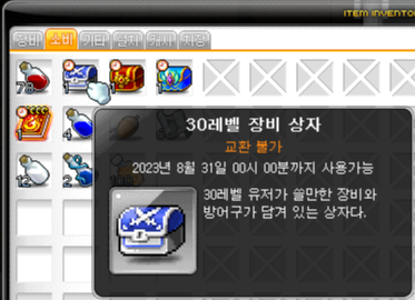 그렇게 30레벨을 달성해서 2차 전직을 했습니다. 하이퍼 버닝을 하면서 얻은 30레벨 장비 상자를 개봉했습니다.