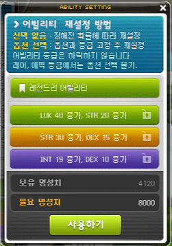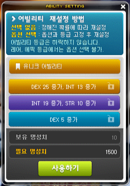 그리고 지금까지 모은 명성치를 모아서 어빌리티 재설정을 해줬습니다. 예전에는 잘못하면 등급이 내려가고 그랬는데 이제는 등급 하락은 없어서 레전더리 달성할 때까지 계속 돌리면 될 것 같습니다.