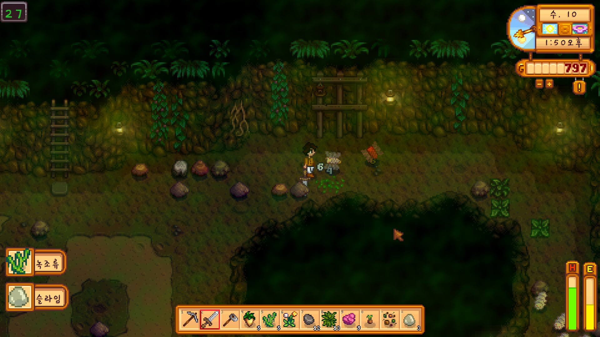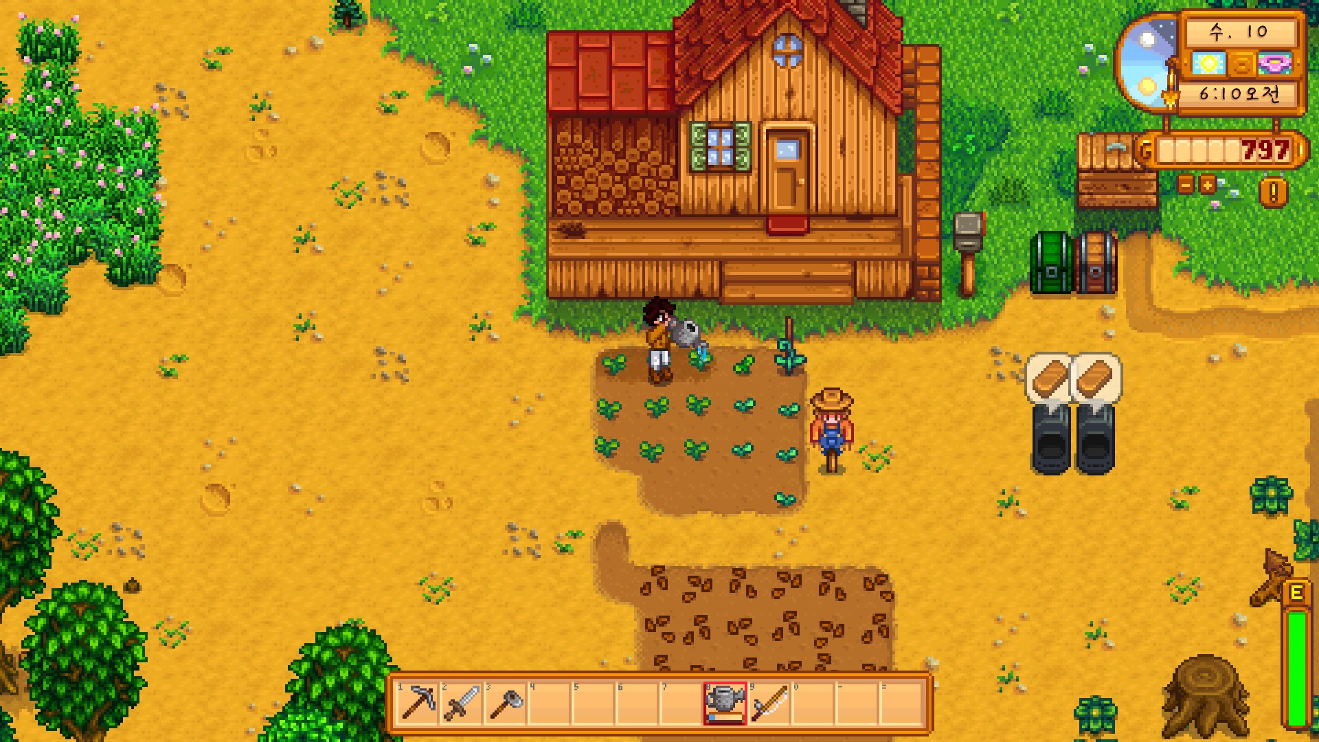 일어나서 농작물에 물을 주고, 남은 체력은 농장 정리에 전부 사용을 했습니다.