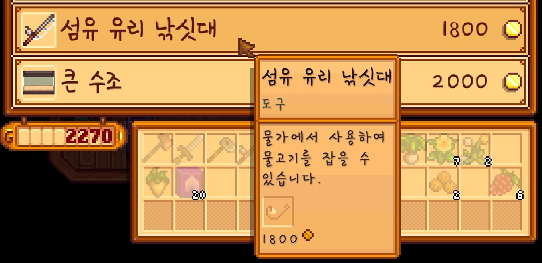 낚시하면서 돈을 모아서 낚싯대를 업그레이드를 해줬습니다. 그러면 이제 미끼를 착용할 수 있는데요.