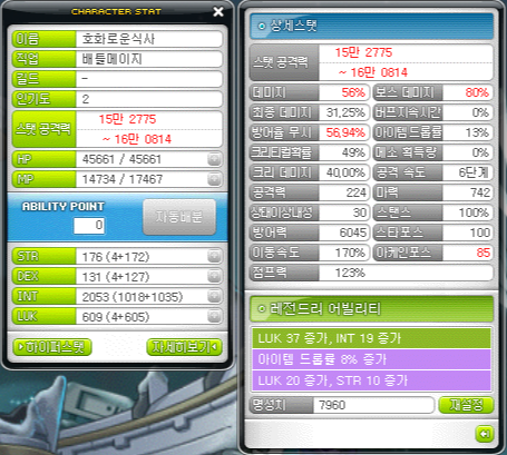 그래서 처음에는 주스탯 2000, 스공 16만 정도였는데