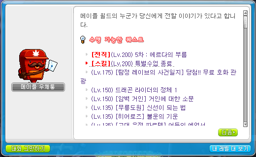 레벨 200을 달성하고 전구를 클릭해보니 빨간 글씨가 두개가 보였습니다.