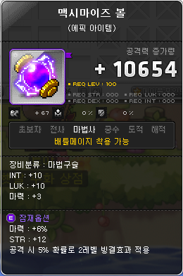 아무튼 보조무기도 마력 6% 띄워줬습니다.