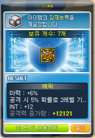 수상한 큐브를 돌려서 일단은 마력 6% 띄워줬습니다.