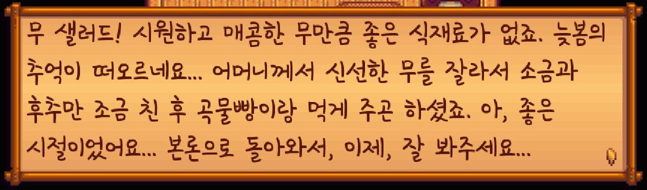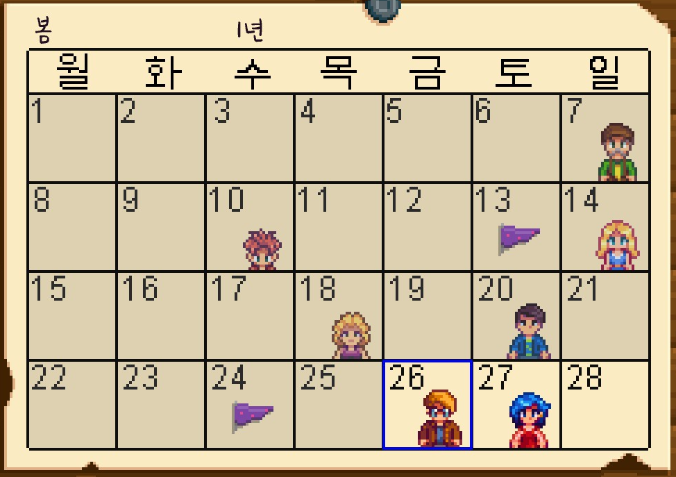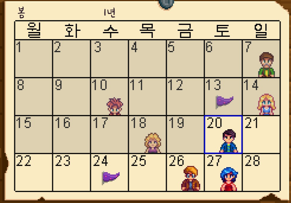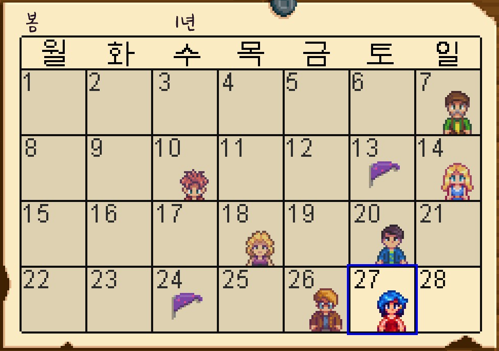 이제 스타듀 밸리에서 가장 바빠지는 시기라고 할 수 있는 1년차 여름에 돌입하게 되겠네요.