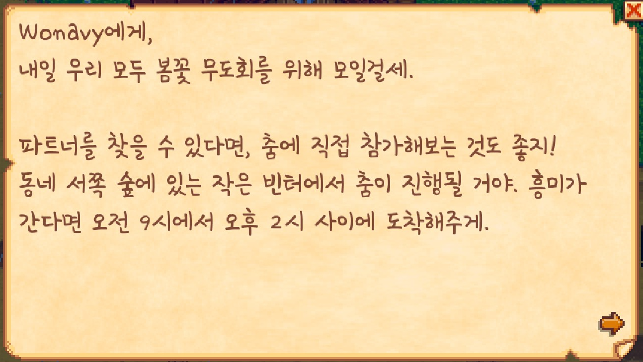 편지를 봤는데 내일 봄꽃 무도회가 열린다고 하는데요. 근데 가봤자 같이 춤을 출 파트너가 없습니다.