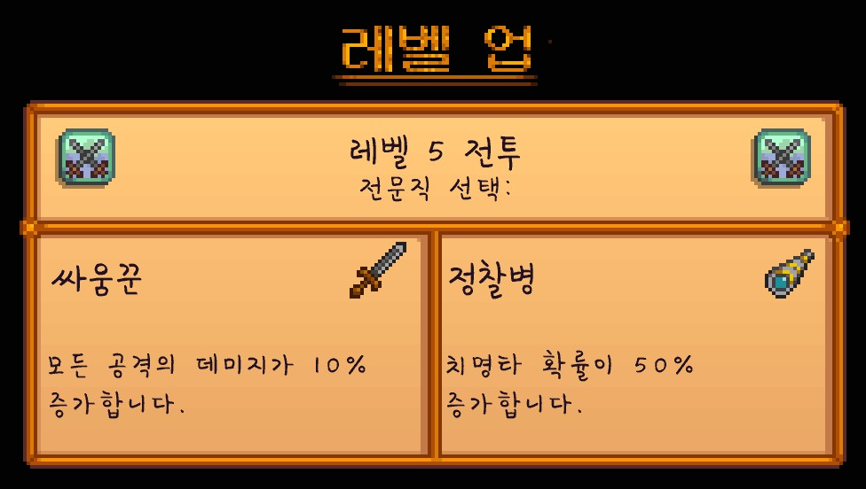그리고 전투 5레벨도 달성을 했는데요. 저는 그냥 무난하게 공격력을 올려주는 싸움꾼으로 선택했습니다.