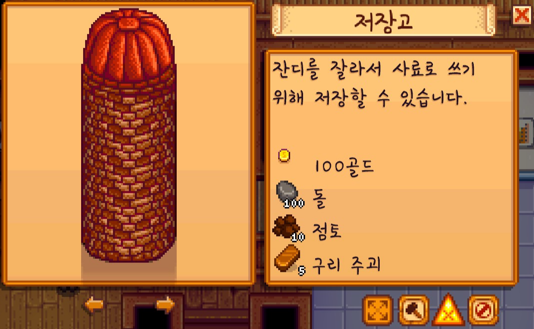 그리고 재료들을 모아서 로빈의 집으로 찾아가 저장고를 지어줬습니다. 이게 있어야 가축의 먹이인 건초를 저장할 수 있기 때문에 우선적으로 건설을 해주려고 합니다.