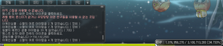 그리고 이제 일일 퀘스트를 클리어하면 얻는 경험치가 꽤나 많이 주도록 패치가 됐다고 들었는데요. 직접 해본 결과 여로 일일 퀘스트는 경험치 7억을 줍니다.
