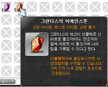 시작하기 전에 5차 전직을 하면서 받은 아케인 스톤을 활성화를 먼저 시켜야 합니다. 경험치 보관통 같은 느낌인데 꽉 채우면 경험치 5억 정도 받을 수 있더라고요.